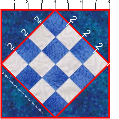 If making a block to fit an 8" x 8" block, finished Square in a Square Block, the measurement for the centre block is 5.657" x 5.657".