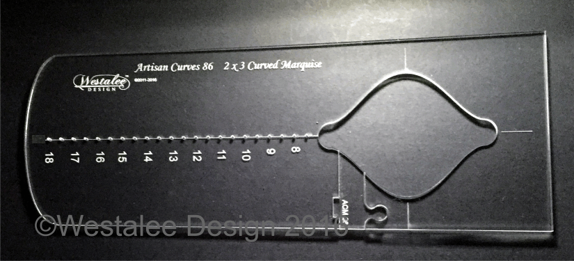 Artisan Curved Marquise 86 Measurement 2.5" x 3" If have you ever wanted to quilt beautiful and interesting circular designs, unique designs with a difference the NEW Westalee Artisan Curves may just be the templates that you have been waiting for. Easy and fun to use each Artisan Curve Template allows you to quilt circular designs up to 18" in diameter.