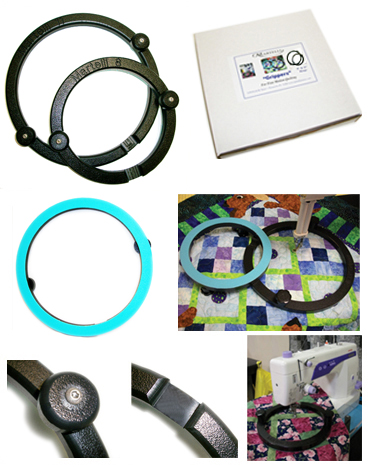 They now offer the small and large rings individually,(see the individual listings) or as a set of two. Theirr exclusive no-slip backing material is the key. It’s the same no-slip backing you will find on their no-slip rulers and templates. The no-slip backing grips your quilt-top just enough to allow free motion movement of the quilt. Convenient knobs ensure a comfortable grip for hours of safe, painless, free-motion quilting.