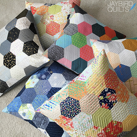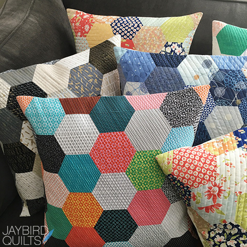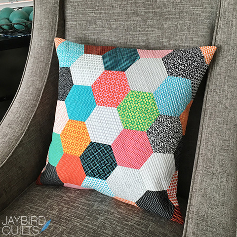 A great project to make using the Hex N More Ruler from Jaybird Quilts. Cushion measures 20" x 20".