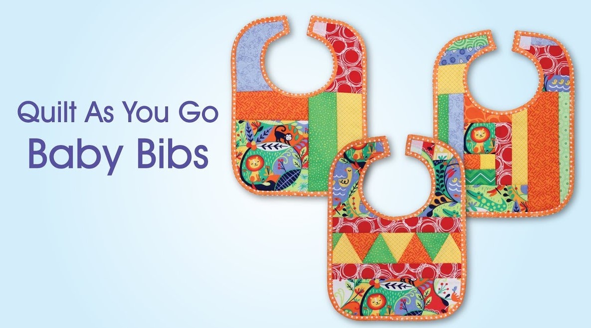 Quilt As You Go pre-printed 80/20 cotton/poly batting for 3 different bib designs. Easy piece-by-number construction. Finished size of each bib is approximately 9in x 12in.