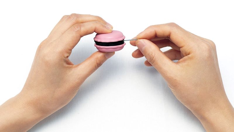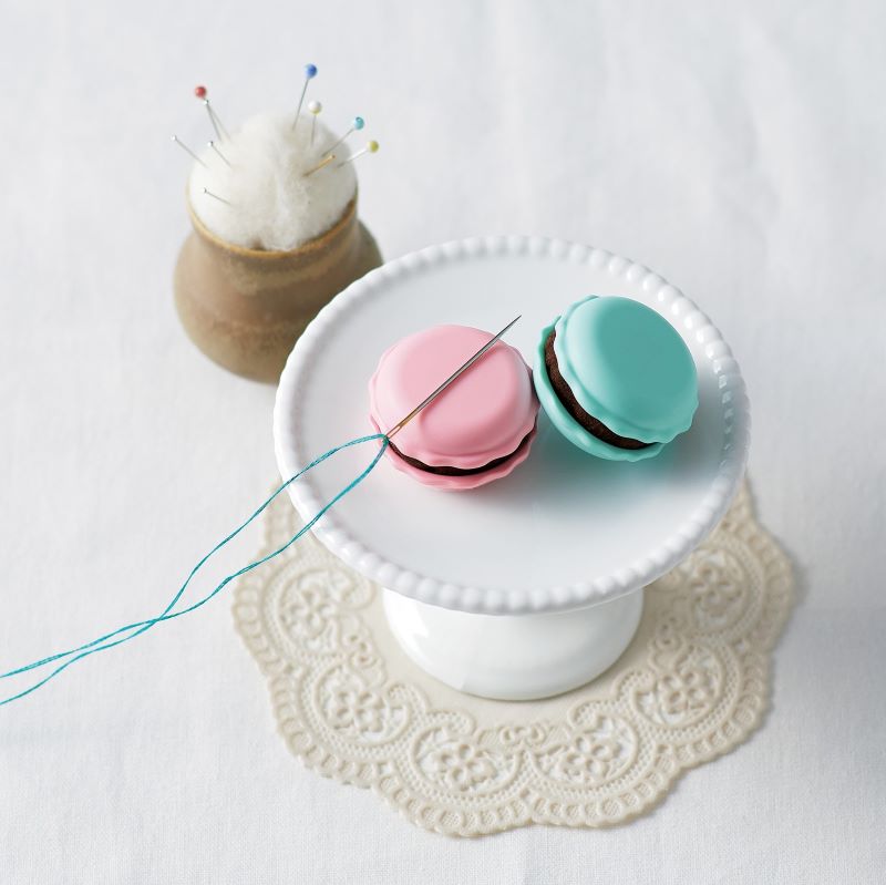 The Sweet 'n Sharp Macaron is a cute magnetic needle holder and needle sharpener.