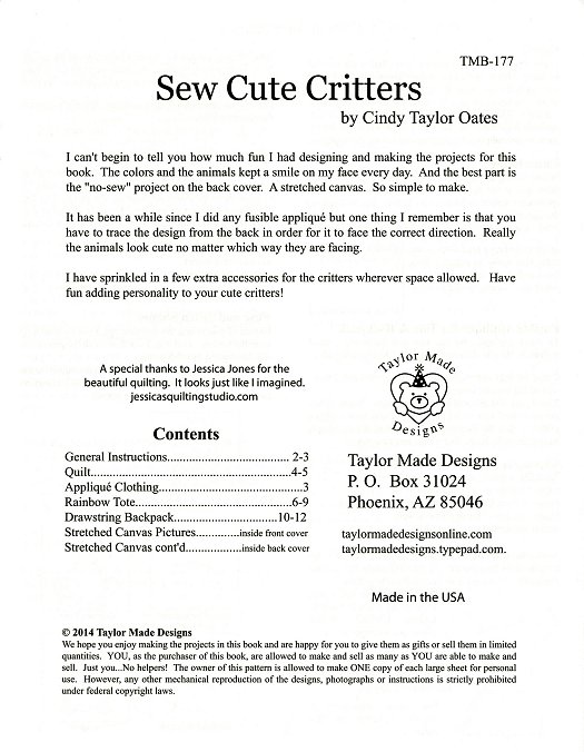 Sew Cute Critters Booklet - Cindy Taylor Oates