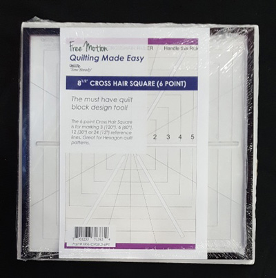 The 8 Crosshair Ruler 6 Point is an 8 1/2" Square Ruler with slots and markings for crosshair marking a quilt block. Use for 2" - 8" blocks, with 6 slots for crosshair marking and an additional 6 marking, giving the possibility of 12 crosshair markings.