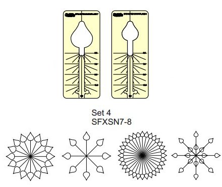 Spin-e-fex templates for Domestic Machines are made from 3mm and 4.5mm clear cast acrylic, have multiple reference lines and have been sized to enable easy handling when stitching. The Templates are cut to suit your Domestic Machine Shank Type.