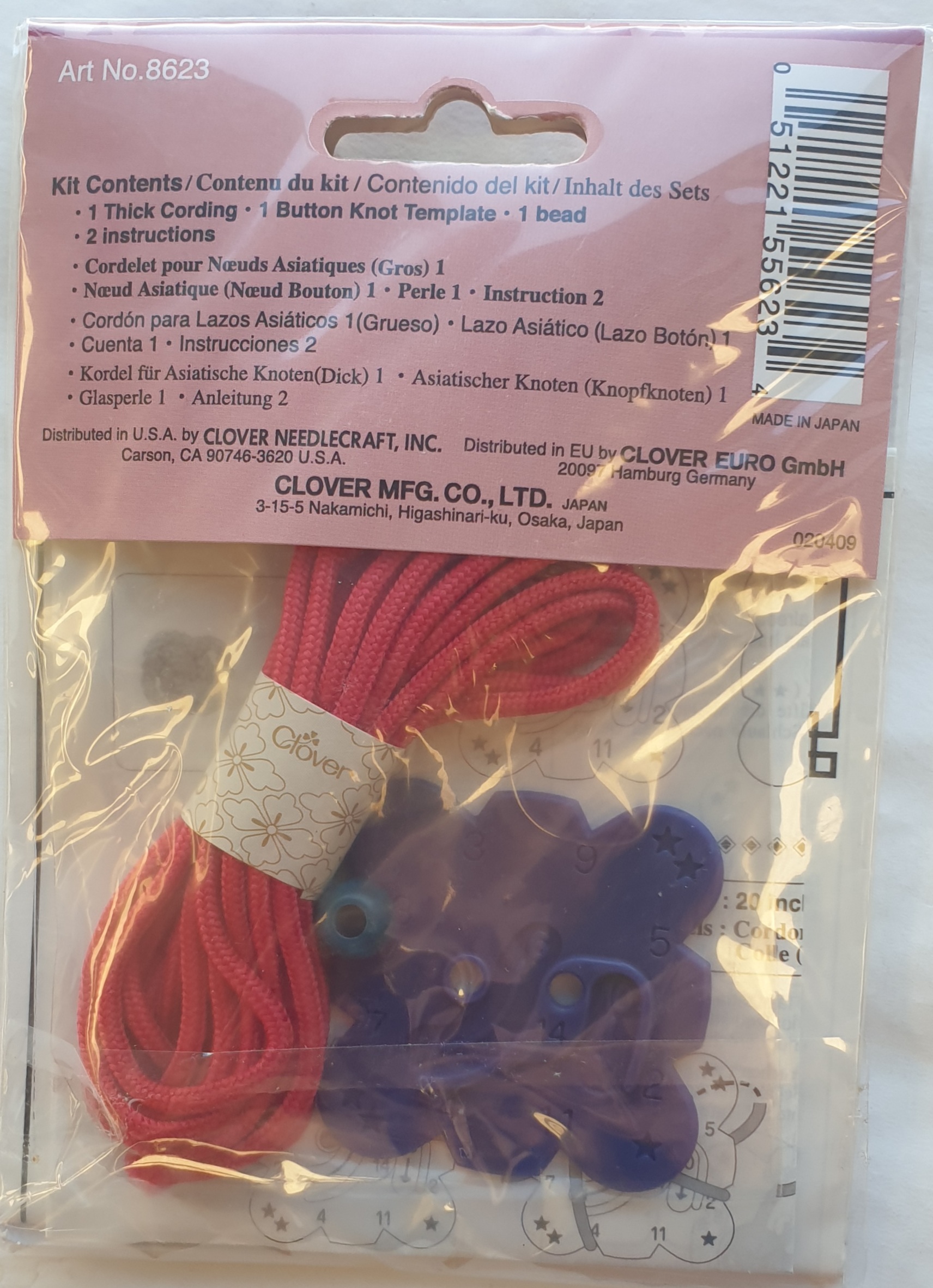 Kit includes: 1 x Thick Cording pkt, 1 x Clover Asian Knot Button Template, 1 Bead and complete instructions.