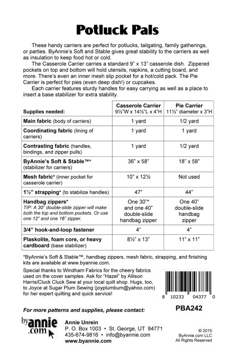 These handy carriers are perfect for potlucks, tailgating, family gatherings, or parties. Instructions included for round Pie Carrier or rectangular Casserole Carrier.