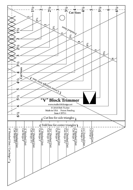This tool is a must have if you like making quilts with these tall star point units. Sometimes known as “Peaky and Spike”, a nickname attached to the unit about 20 years ago by a famous quilter, Doreen Speckman, this particular shape has perplexed quilters forever. With Deb’s tool, which you can see used on our free online video demonstration, you’ll be cutting the center and side triangles slightly over sized and then with the same tool trimming the sewn piece to an extremely precise unit with seams perfectly placed for crisp, sharp points at every intersection. So think about adding this magnificent new tool to your toolbox, you’ll be glad you did.