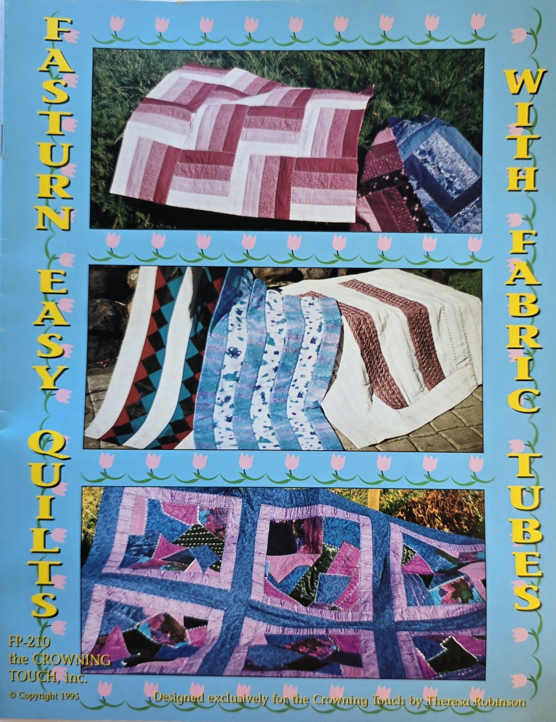 Fasturn Easy Quilts Booklet has 6 quick tube quilt projects - Baby quilt Seminole patchwork, Heirloom, Rail Fence Crazy Quilt & Oregon Trees Stained Glass.