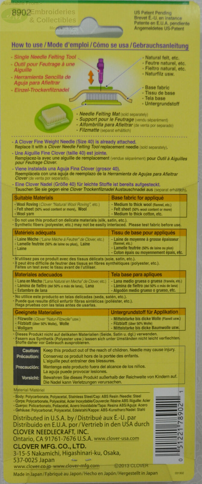 Suitable materials for felting appliques include: felt sheet with a minimum of 50% wool content, raw wool, wool yarn, and woven wool fabric
