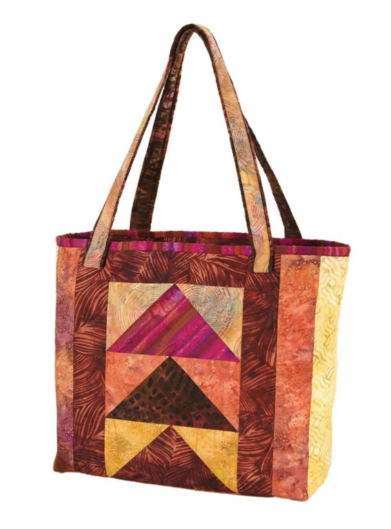 Use the ultra-versatile Tori Tote Bag as a purse, book bag, or shopping tote. It's triangle fabric layout can look like flying geese or chevrons and your own scraps add personality. This simple Quilt-As-You-Go project from June Tailor comes together quickly.
