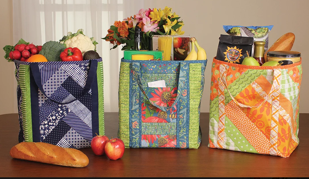 Oh so handy! These Utility Shopper's Totes are stylish, large, and easy to sew up. The patterns are printed on durable utility fabric and a Quilt-As-You-Go design makes it easy to piece the top by number, quilt with every seam, add handles and bind.
