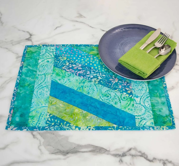 Brighten your table and lighten your fabric stash with the Jakarta Placemats. An easy, Quilt-As-You-Go project, the pattern for these placemats is printed on the batting so it's a snap to sew by number and have all six finished in a flash.