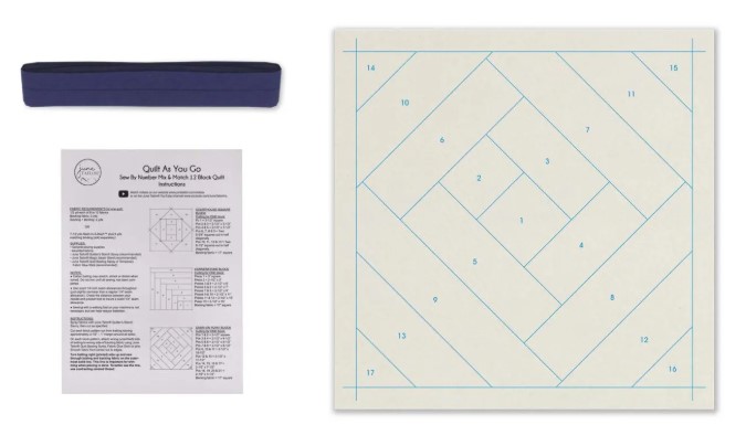 The design possibilities are endless when you mix fabrics, reposition and rotate the blocks to create a unique quilt. Make it "matchy" or make it "scrappy" with these easy Quilt As You Go, sew-by-number block patterns printed on batting. Join the blocks together with matching sashing or use June Tailor’s ® Sash-In-A-Dash™ (not included in kit).