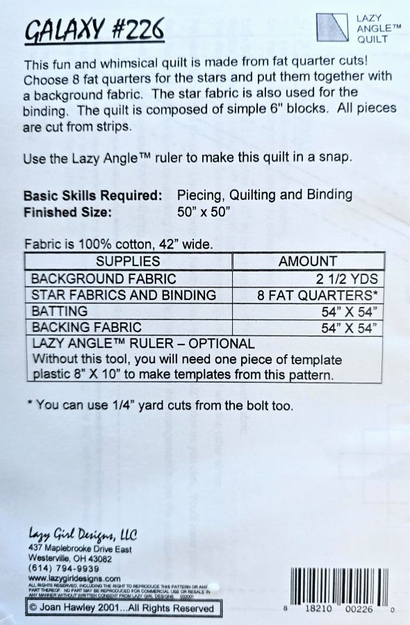 Designed to be used with the Lazy Angle Ruler, now made by Creative Grids. However, it may be used without as templates are included with the pattern.