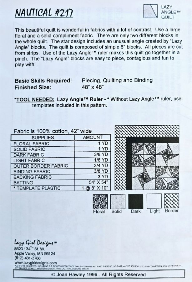 Use fabrics with a strong contrast for the Nautical Quilt using the Lazy Angle Ruler. There are only two different blocks for the entire quilt. Simple 6" Blocks makes it an easy quilt for beginners too.