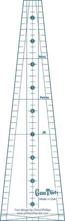 The Jewel Box Gem Thirty is a great addition to the Jewel Box family. Three Gem Thirty pieces sewn together makes a Gem Ten. When you substitute a three pieced Gem Ten in the existing designs you add a whole different flavor to your projects. You can also divide the Gem Five into six sections.