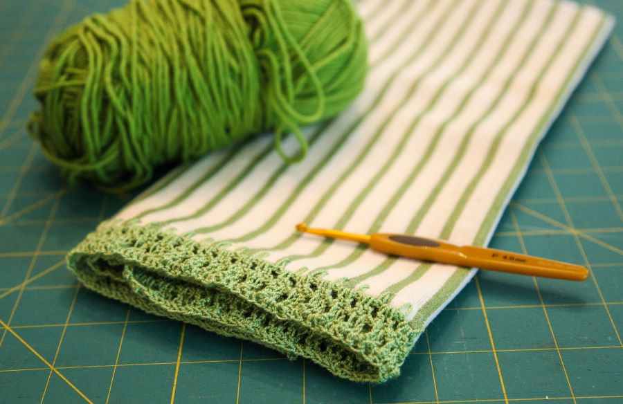 This blade is perfect for projects that have a lot of detail when using smaller yarns or when adding over edge finishing such as lacing or crocheting to clothing. To use your Skip Stitch #2 Blade simply place your blade on any 45mm rotary cutter and roll across the fabric of your choosing to create evenly spaced holes ready for crocheting or what ever your project calls for. The blades are extremely sharp, so make sure to use a cutting mat under your fabric and it’s also helpful to roll the blade along a ruler or straight edge to ensure your cuts are in a straight line.