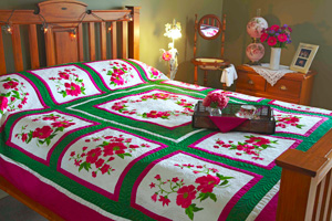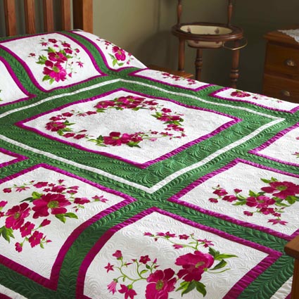 The Perfect Bliss design CD includes 106 embroidery designs, (suitable for 350mm x 360mm, 200mm x 360mm and 200mm x 200m hoop sizes), full color detailed directions and 'actual size' Design Layout Diagrams. All you have to do is get your fabrics, threads and stabilizers, Jenny even gives you four additional thread and fabric combinations to choose from in the Perfect Bliss quilt directions!