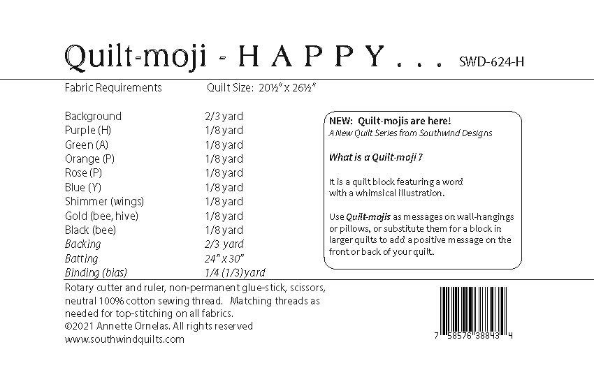 The Quilt-Moji: HAPPY is a small wall-hanging 20½” x 26½”