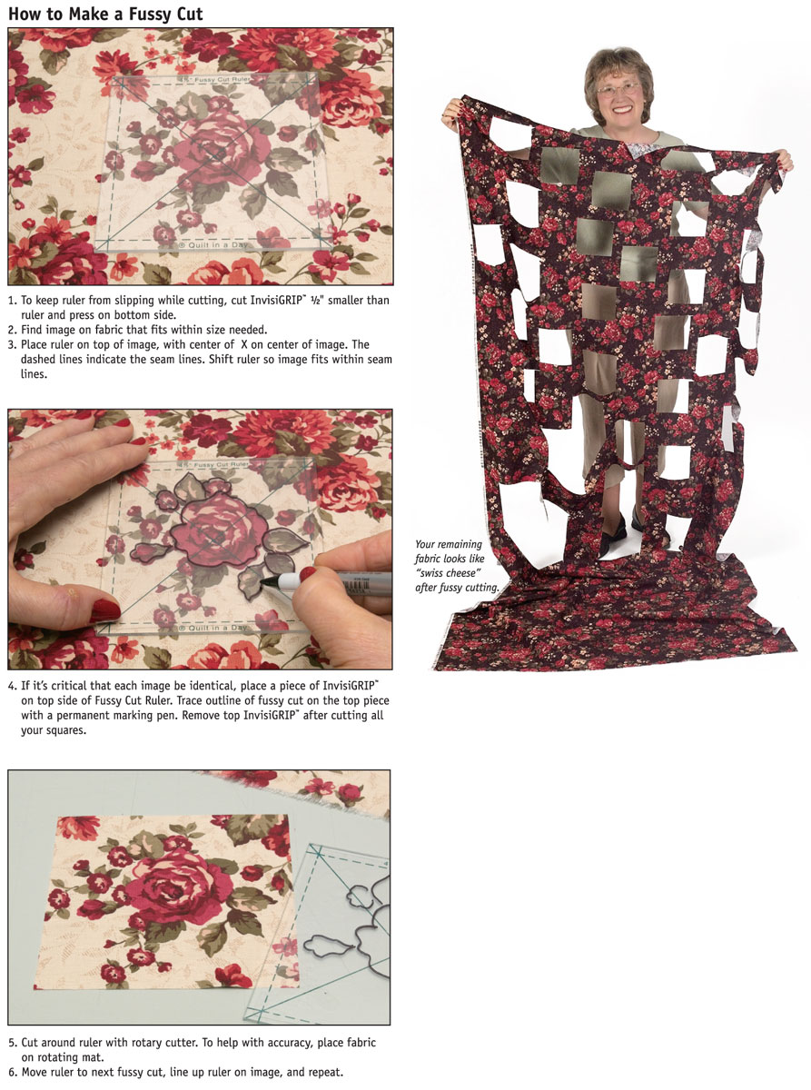 Click on the product image for an image of a completed small quilt using the Fussy Cut Ruler.