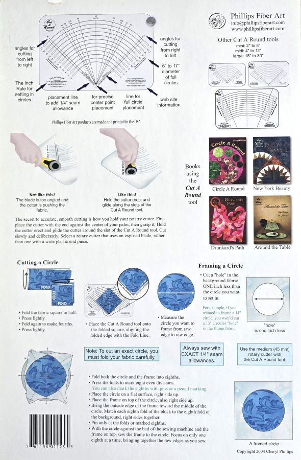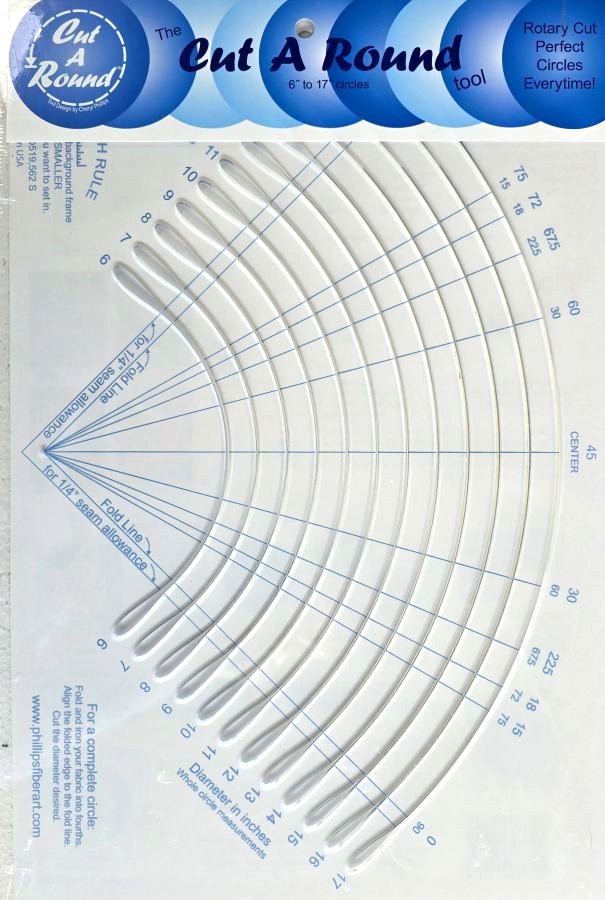 Instructions for cutting and framing circles are included with the Cut A Round Tool and it is best advised to use a 45m rotary cutter.