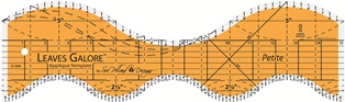 The Leaves Galore Petite Template is an appliqué template for rotary cutting. It has 2.5" and 5" curves for rotary cutting appliqué shapes including simple leaves, ribbons, tulip shaped leaves and petals.