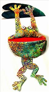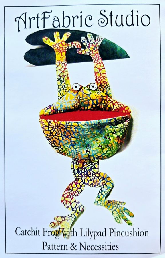 Mr. Catchit Frog likes to be fed sewing threads, fabric snippets and paper trimmings. All those mysterious things found in the washing machine or dryer, such as paperclips, ponytail holders, screws, coins may be thrown in too, but he's allergic to flies and bugs.