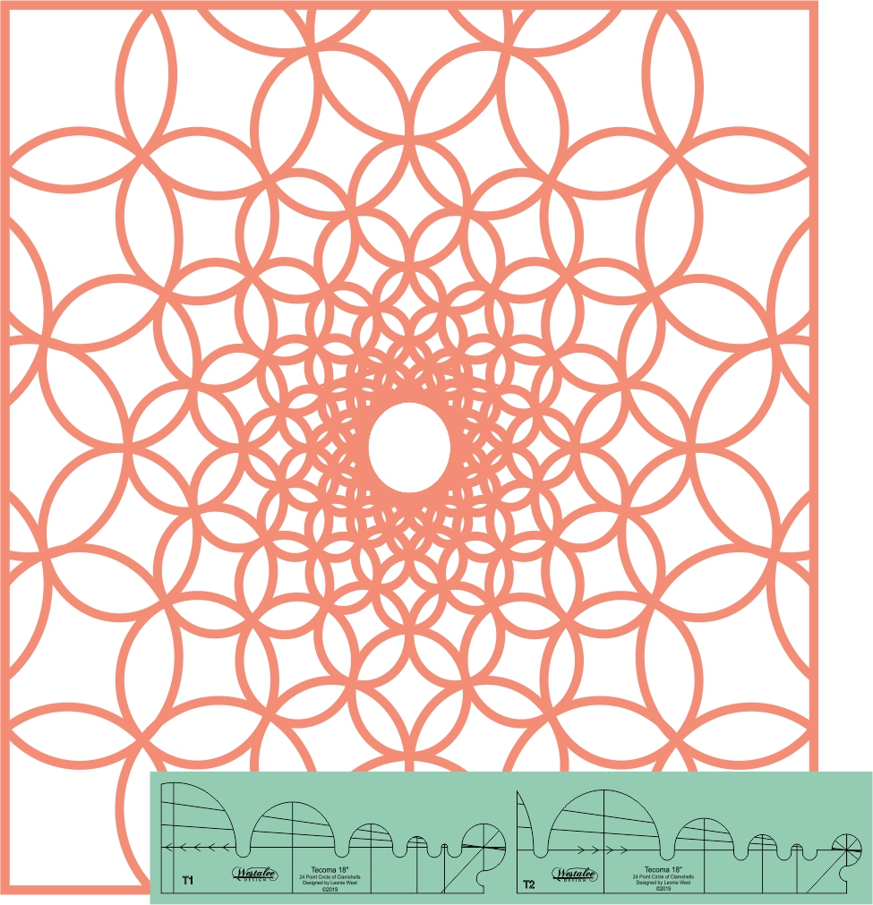 Get the 5pc set plus Book, The Ranges: Tecoma 18″ sizes, Circles On Quilts Set 1 and 7-1/2″ Spin-e-fex #4.