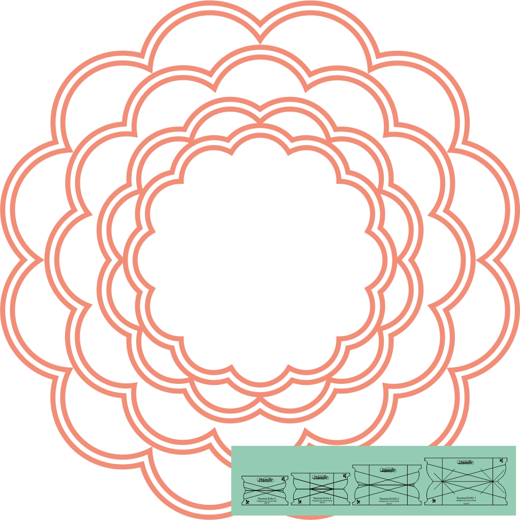 The Tecoma family of designs can be used as stand alone quilting designs on blocks, borders and whole quilts. Tecoma is a spectacular design in its own right when used alone or Tecoma can be subtle when used to fill an area behind another design. Tecoma is the perfect Template to quilt with Leonie’s TempLeeQuilting Technique as it shows off the feature fabric to perfection. Quilted from the centre out and worked in a circular motion Tecoma is not only easy to quilt, but it is also easy to be creative with.