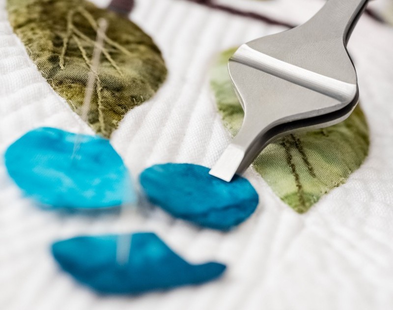The Apliquick Tweezers make holding tiny appliqué pieces incredibly easy, whether your cutting them or turning the edges over.