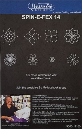 Spin-e-fex templates for Domestic Machines are made from 3mm and 4.5mm clear cast acrylic, have multiple reference lines and have been sized to enable easy handling when stitching. The Templates are cut to suit your Domestic Machine Shank Type. Price varies depending on the size of the stencil and the type of shank.